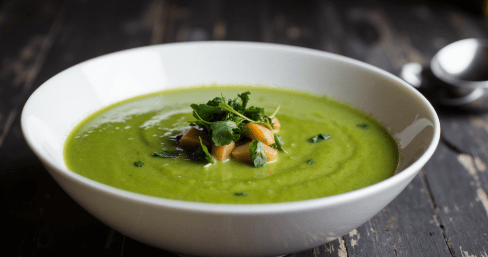 Remove the pan from heat. Using a stick blender, carefully purée the soup until completely smooth. Work in a circular motion, lifting the blender slightly to incorporate air.